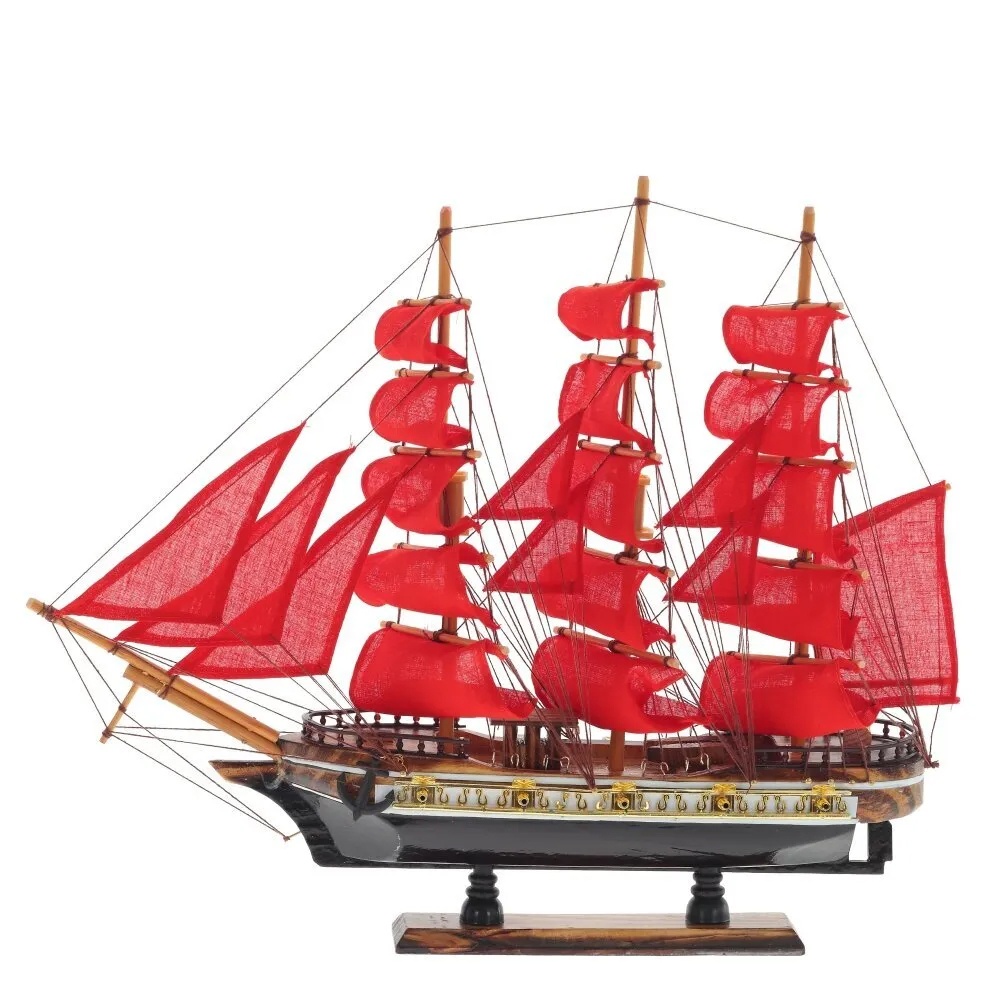 Декоративная модель деревянного парусника с красными парусами в подарочной упаковке With The low