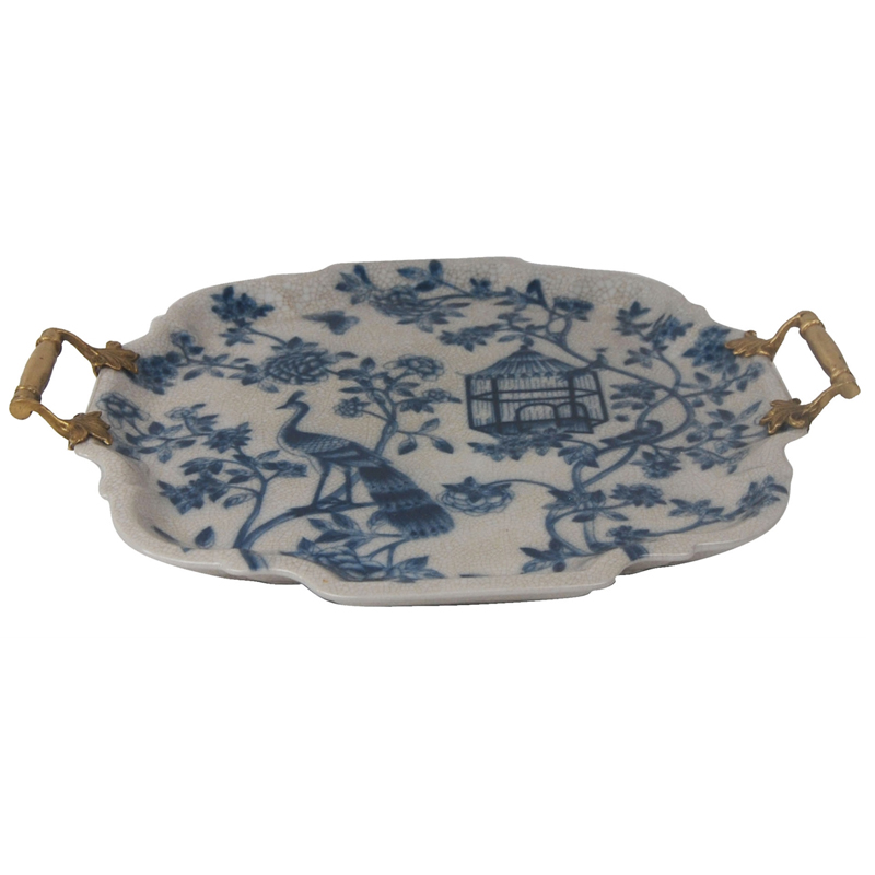 Поднос Peacock Garden Vase Бронза Синий Белый в Грозном | Loft Concept
