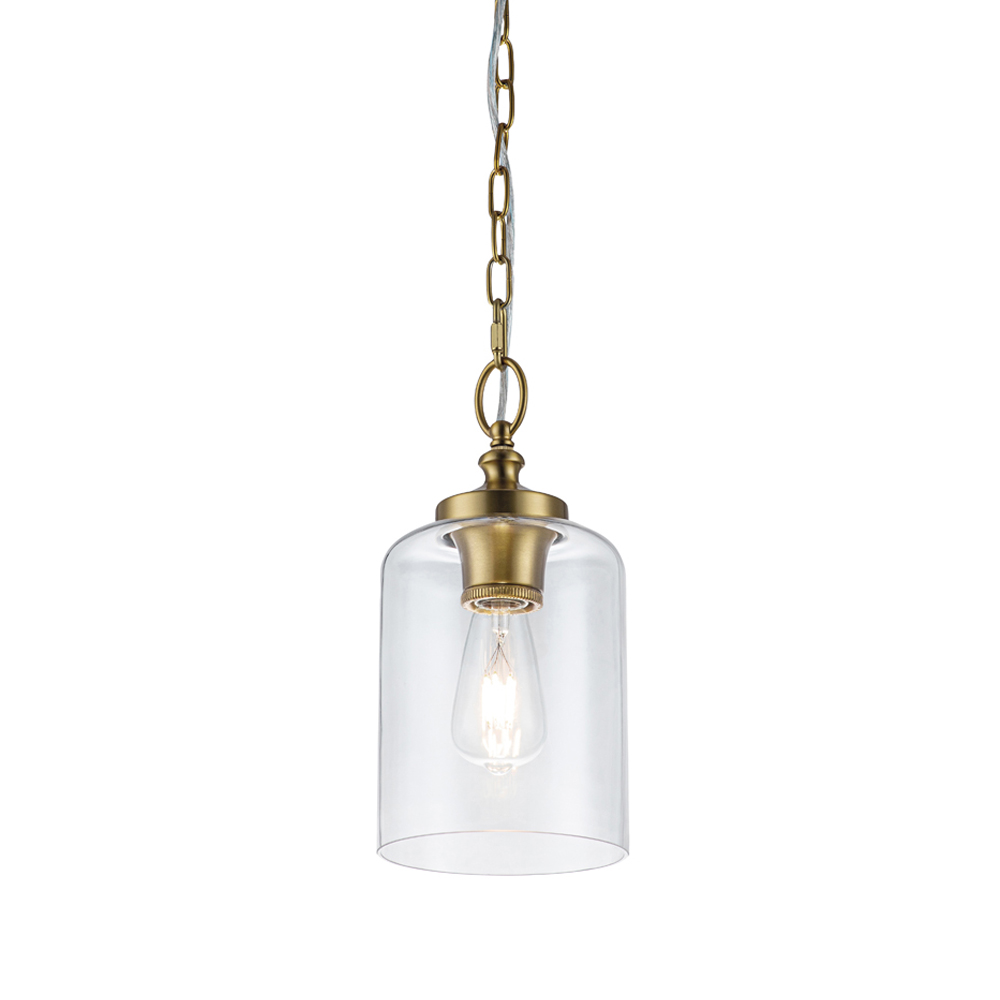 Подвесной светильник латунного цвета с прозрачным стеклянным плафоном Feiss Прозрачное Стекло Латунь в Грозном | Loft Concept